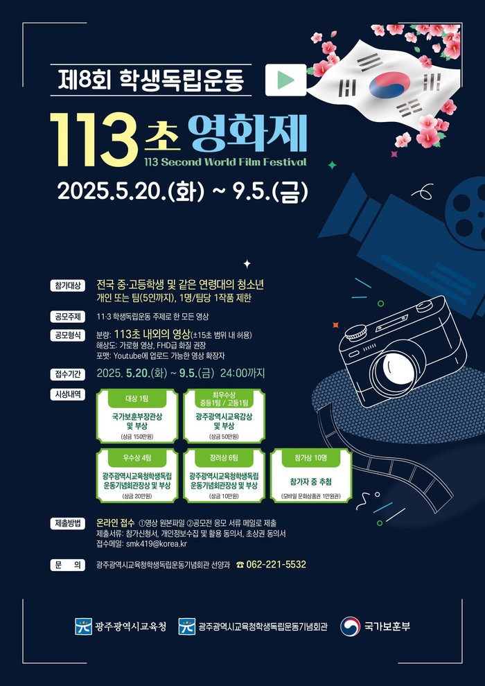 - 광주시교육청학생독립운동기념회관, ‘113초 영화제’ 공모