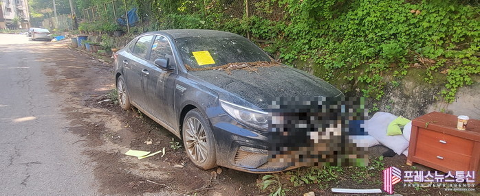 ▲도로변에 무단 방치된 차량(사진=단원구)) |