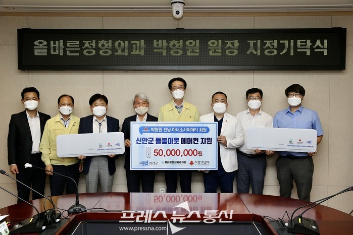 [전남]=프레스뉴스] 강래성 기자= 신안군(군수 박우량)은 지난 12일 올바른정형외과 박형원 원장으로부터 전남사회복지공동모금회를 통해 5천만원 상당의 벽걸이에어컨(6평형) 88대를 기부받았다고 전했다.