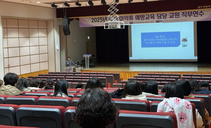 [광주=프레스뉴스] 강래성 기자= 광주시교육청(교육감 이정선)은 25일 광주학생독립운동 대강당에서 초·중·고·특수학교 100여 명을 대상으로 ‘학생 마약 예방교육 담당 교원 직무 연수’를 개최했다.
