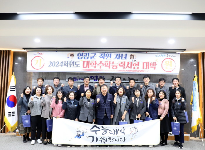 이날 강종만 영광군수는 수능 수험생 자녀를 둔 직원 28명(수험생 자녀 30명)에게 ‘수능 대박 기원 격려품’과 응원 메시지를 전달하고 일과 가정 모두 최선을 다해 준 직원들의 노고를 위로하는 시간을 가졌다.