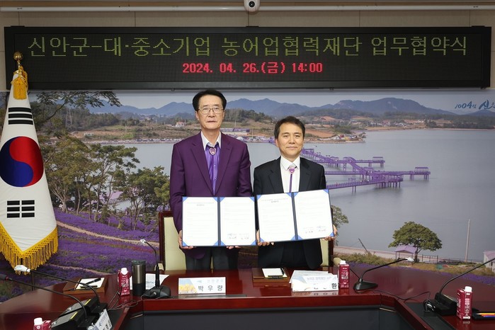 [전남=프레스뉴스] 강래성 기자= 신안군(군수 박우량)은 지난 26일 군청 영상회의실에서 대·중소기업·농어업협력재단(사무총장 김영환) 등 30여 명의 관계자들이 참석한 가운데 농어촌 경쟁력 강화와 농어업의 미래 성장 등 유기적인 협력 도모를 위한 업무 협약식을 체결했다고 밝혔다.