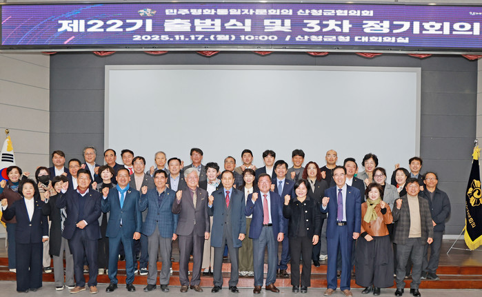 [프레스뉴스] 정재학 기자=민주평화통일자문회의 산청군협의회는 11월 17일 산청군청 대회의실에서 ‘제22기 협의회 출범식 및 제3차 정기회의’를 개최했다.이 자리에는 이승화 산청군수와 박덕선 신임 협의회장을 비롯한 신임 자문위원들이 참석했다.