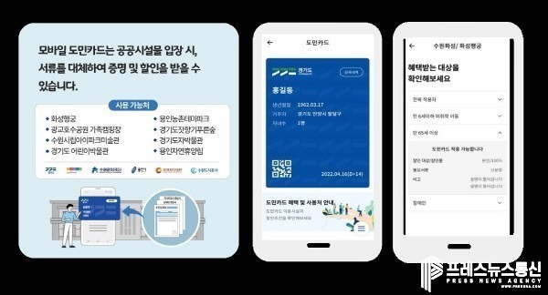 [프레스뉴스] 장현준 기자= 경기지역 공공시설 입장 할인 자격을 간편하게 확인해주는 ‘도민카드’ 적용 시설이 다음 달 중 기존 8곳에서 52곳으로 대폭 확대될 예정이다. 도민카드는 마이데이터를 활용한 맞춤형 정보서비스 ‘경기똑D’ 앱에서 사용가능하다.