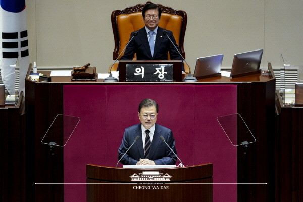 문 대통령의 시정연설은 이번이 6번째로 역대 대통령 가운데 임기 중 매년 예산안 시정연설을 직접한 것은 문 대통령이 처음이다.