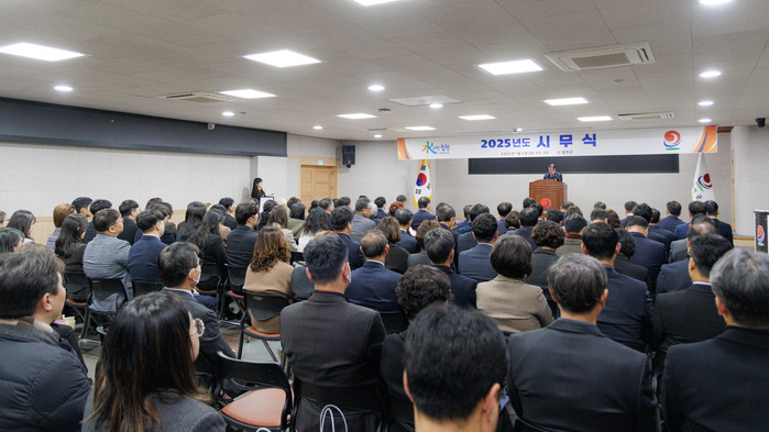 이날 시무식은 순국선열과 호국영령 및 무안공항 여객기 사고 희생자에 대한 묵념을 시작으로 장재혁 부군수의 공무원 헌장 낭독, 표창 수여, 신년사, 군가 제창의 순으로 진행되었다.