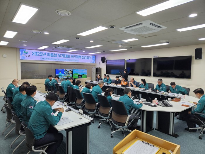 ▲고성군은 지난 11일 군청 재난안전상황실에서 ‘2025년 여름철 풍수해·폭염 추진대책 점검회의’를 열고 선제적 대응방안과 유관기관 협력체계 강화 방안을 논의했다고 밝혔다. (사진=고성군) |