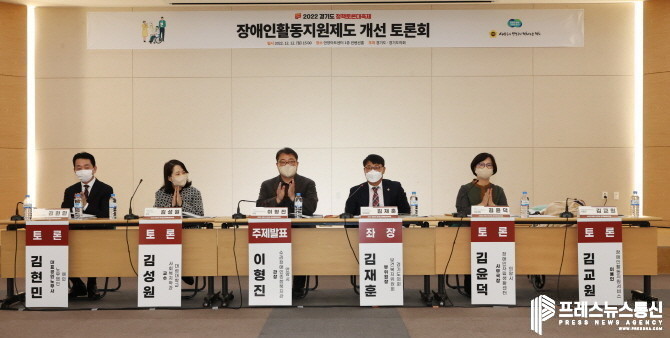 [프레스뉴스] 김대일 기자= 김재훈 경기도의원(보건복지위원회, 국민의힘, 안양4)이 좌장을 맡은 ‘장애인활동지원제도 개선 토론회’ 가 12일 안양아트센터 1층 컨벤션홀에서 열렸다. 경기도와 경기도의회가 공동 주최하는 ‘2022 경기도정책토론대축제’ 의 하나인 이번 토론회는 장애인활동지원제도의 현황을 파악하고, 효과적인 개선방안 마련의 필요성에 따라 열렸다. 생방송으로 진행된 토론회는 문자 및 수어 통역과 함께 토론자의 의견을 전달했다.