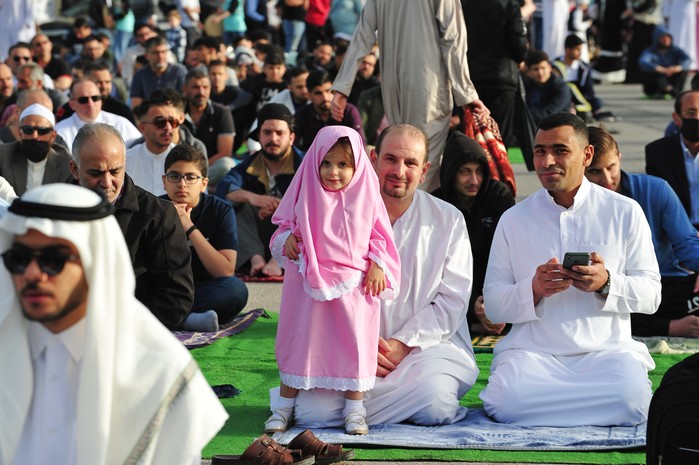 [프레스뉴스] 채정병 특파원=2일(현지시간) 라마단 종료와 함께 시작된 이슬람의 대표명절 이드 알 피트르 합동 기도회에서 아빠와 함께 온 어린 아이가 환하게 웃고 있다.