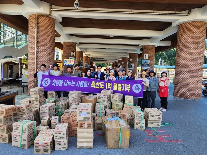 | ▲1억 원 상당의 후원 물룸을 전달받은 흑산도/신안군 제공 |
