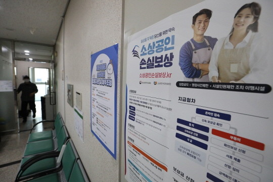 ▲서울 종로구 소상공인시장진흥공단 서울중부센터에 소상공인 손실보상 포스터가 걸려 있다. (사진= 뉴스1) |