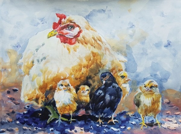 ▲ 이일주 '엄마랑 함께' 수채화 (사진제공=조폐공사) |