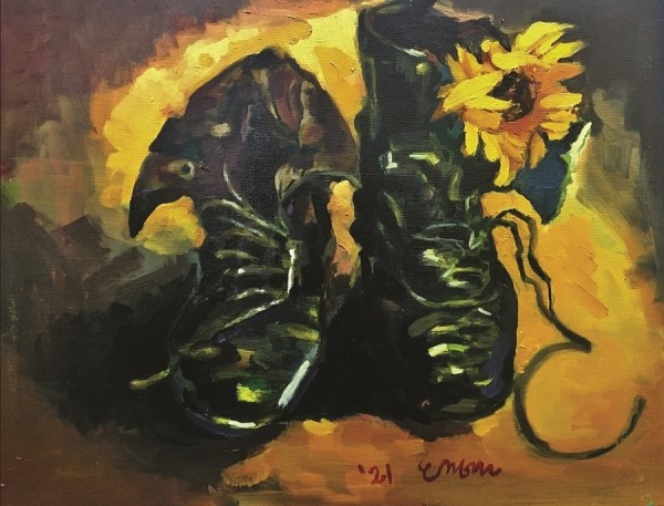 ▲ 오정열 '낡은 구두와 해바라기' 유화 (사진제공=조폐공사) |