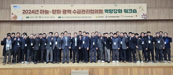 지난 18일에는 마늘·양파 생산자단체, 자조금협회, 시군 주산지 농협 등 80여 명이 참석한 가운데 마늘.양파 광역 수급관리협의회 워크숍을 열었다. 2025년산 마늘·양파 정책 방향과 정부의 농업수입안정보험 정책, 이춘수 순천대 교수의 ‘농산물 가격 특징과 농업인의 대응전략’ 설명을 듣고 수급안정 대책을 논의했다.