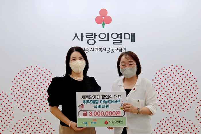 [프레스뉴스] 임규모 기자= 세종맘카페 정연숙 대표가 5일 세종사회복지공동모금회를 방문해 취약계층 아동·청소년 급식지원비 300만원 기탁했다.