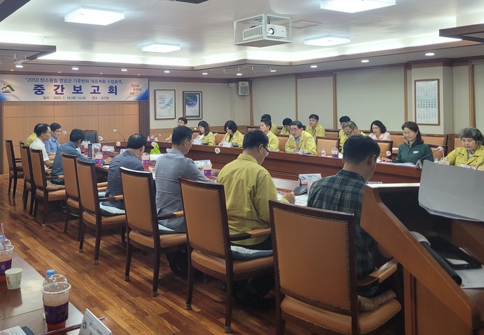 [전남=프레스뉴스] 강래성 기자= 영암군(군수 우승희)이 지난 18일 군청에서 ‘2050 탄소중립 기본계획’ 수립 용역 중간보고회를 개최했다.