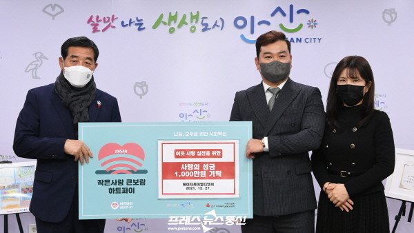 [프레스뉴스] 장현준 기자= 안산시(시장 윤화섭)는 27일 ㈜에이치케이엘디앤씨(대표 이세광)로부터 관내 어려운 이웃을 위한 사랑의 후원금 1천만 원을 기탁 받았다