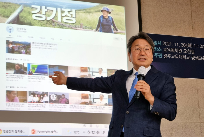 강 전 수석은 30일 오전 광주교육대학교 교육매체관에서 대학생 80명을 대상으로 ‘청년과 함께하는 강기정의 젊은 Talk’ 강연을 진행했다.