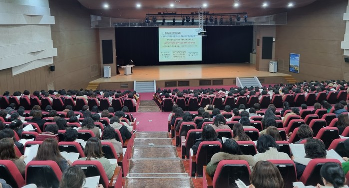 전남교육청은 6일 화순 하니움스포츠센터에서 각급 학교의 영양교사‧영양사 및 학교급식 업무담당자 등 800여 명을 대상으로 ‘2024 학교급식 기본 계획 설명회’를 열고, 성장기 학생 건강을 지키는 학교급식 운영 방안을 공유했다.