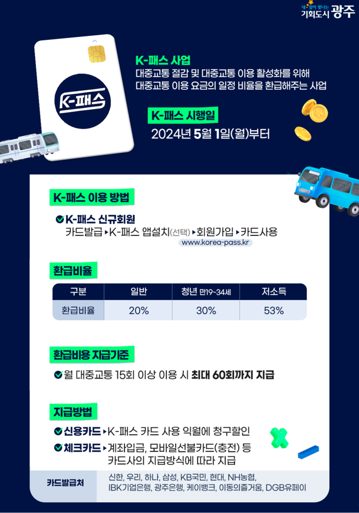 K-패스와 연계 탈수록 더 돌려받는 광주G-패스로 대자보 도시 전환