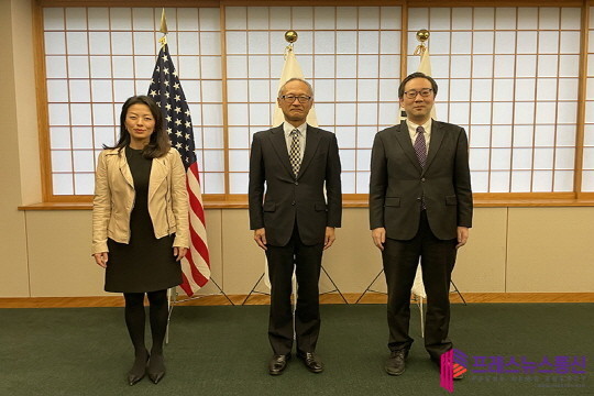 ▲왼쪽부터 정 박 미국 국무부 대북특별부대표, 이시즈키 히데오 일본 외무성 사이버안보대사, 이준일 외교부 북핵외교기획단장. (사진=외교부) |