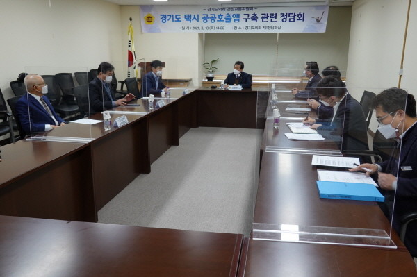 [프레스뉴스] 김대일 기자= 경기도의회 건설교통위원회(위원장 김명원)는 3월 18일(목) 경기도의회 제1정담회실에서 경기도 교통국 택시교통과, 경기도 개인택시조합 및 법인택시조합 관계자들과 함께 ‘경기도 택시 공공호출앱’구축과 관하여 논의하고자 정담회를 개최하였다.