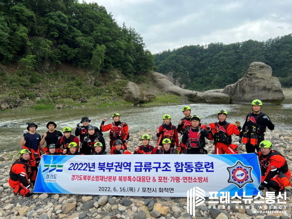 [프레스뉴스] 김대일 기자= 경기도북부소방재난본부(본부장 고덕근)는 여름 행락철을 앞두고 16일 포천시 영북면 화적연에서 ‘급류사고 대비 북부권역 소방서 간 합동훈련’을 실시했다고 밝혔다.