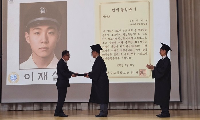 - 1929년 항일시위 주도한 이재실·박사배 독립운동가에게 광복 80주년 맞아 명예졸업장 수여