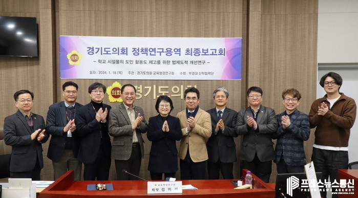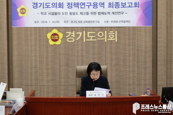 [프레스뉴스] 김대일 기자= 경기도의회 교육행정위원회 연구단체인 ‘교육행정연구회(회장 김미리)’는 18일 교육행정위원회 회의실에서 ‘학교시설물의 도민 활용도 제고를 위한 법 제도적 개선연구’ 의 최종보고회를 개최하였다.