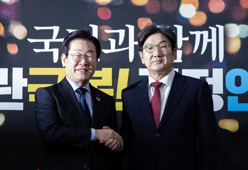 | ▲이재명 더불어민주당 대표가 18일 오후 서울 여의도 국회에서 권성동 국민의힘 당대표 권한대행 겸 원내대표와 악수하고 있다.(사진= 뉴스1) |