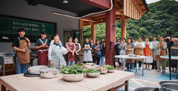 ▲장성군이 국립남도음식진흥원 유치 준비에 박차를 가하고 있다. 사찰음식 교육 중인 정관스님(사진제공=장성군) |