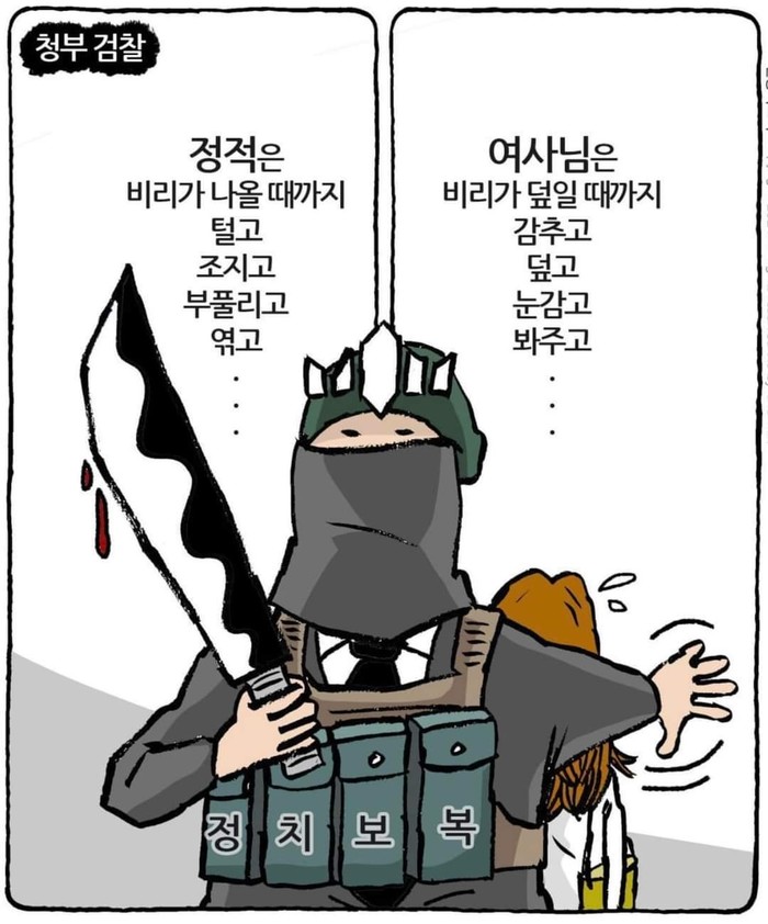 그게 끝이 아니었다. 기이한 억지 논리와 궤변이 통하지 않으니 태도를 180도 바꿔 동정 여론에 기대려 했었다. TV에 나온 대통령 남편은 박절하지 못해서, 매정하게 대할 수 없어서 명품백을 받았다고 천연덕스럽게 너스레를 떨었고, 대담을 진행하던 관영방송의 앵커는 그까짓 쬐끄만 가방 갖고 왜 이리도 난리냐는 투로 아첨을 떨었다.