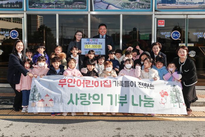 | ▲무안군청에서 진행된 무안어린이집 아나바다 수익금 기탁식/무안군 제공 |