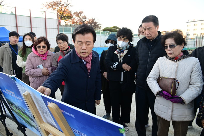 진주대첩광장 조성사업은 총사업비 940억 원을 들여 대지면적 1만 9,870㎡에 연면적 6,382㎡로 추진되며, 지하 1층은 주차장, 지상은 공원지원시설과 역사공원으로 구성돼 내년 상반기 준공을 목표로 진행되고 있다.