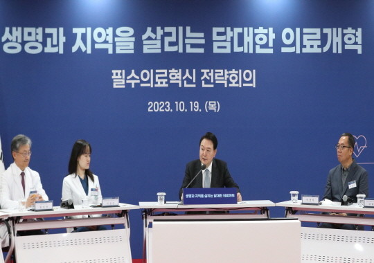 윤 대통령은 "지역 필수 의료를 살리고 초고령 사회에 대비하기 위해 의료 인력 확충과 인재 양성은 필수 조건"이라며 "임상 의사뿐 아니라 관련 의과학 분야를 키우기 위한 의료인도 양성해야 한다"고 강조했다.
