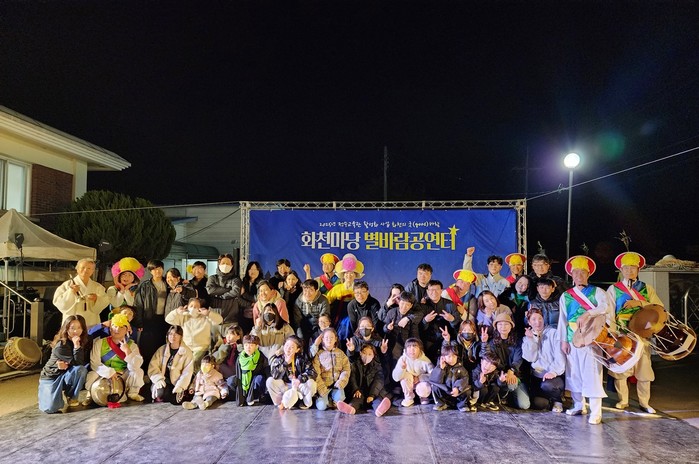 저녁에는 화천마을의 밤하늘 아래에서 사자춤, 전통 마술쇼, 함안화천농악 연희공연 등 지역 고유의 전통공연이 이어졌으며, 마을 주민과 외국인 노동자들도 함께 어우러져 지역공동체 문화를 체감하는 시간도 가졌다.