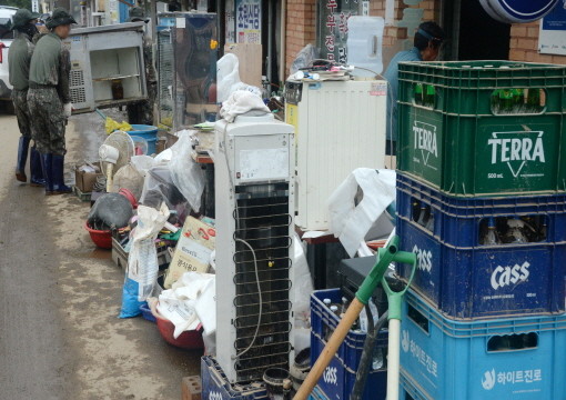 | ▲지난 11일 전북자치도 완주군 운주면 침수 피해 현장에서 장병들이 복구 작업을 하고 있다.(사진= 뉴스1) |