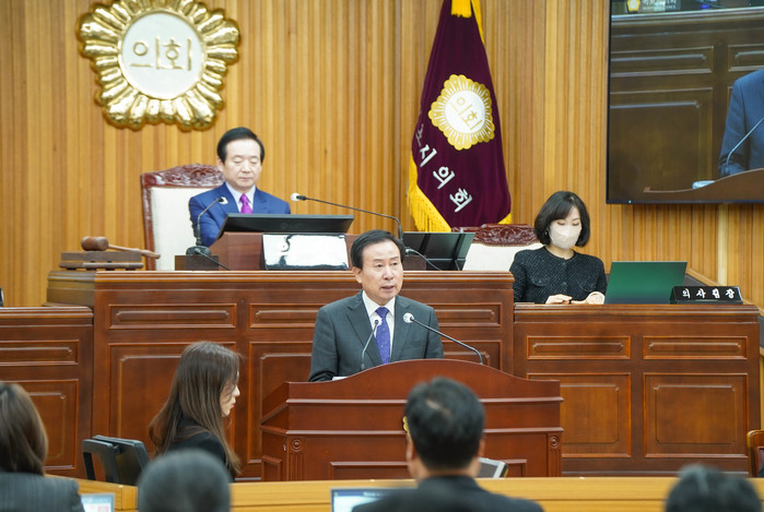 [전남=프레스뉴스] 강래성 기자= 박홍률 목포시장은 29일 제394회 제2차 정례회 시정연설을 통해 2025년도 시정운영과 예산편성 방향을 밝혔다.