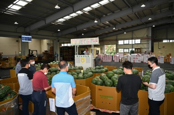 ▲ 예산농산물공판장 경매 모습(사진제공=예산군) |