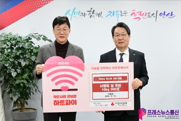[프레스뉴스] 장현준 기자= 안산시(이민근 시장)는 14일 ㈜동은(대표 박성순)으로부터 저소득 소외계층을 위한 사랑의 쌀 300포(10kg)를 기탁받았다고 밝혔다.
