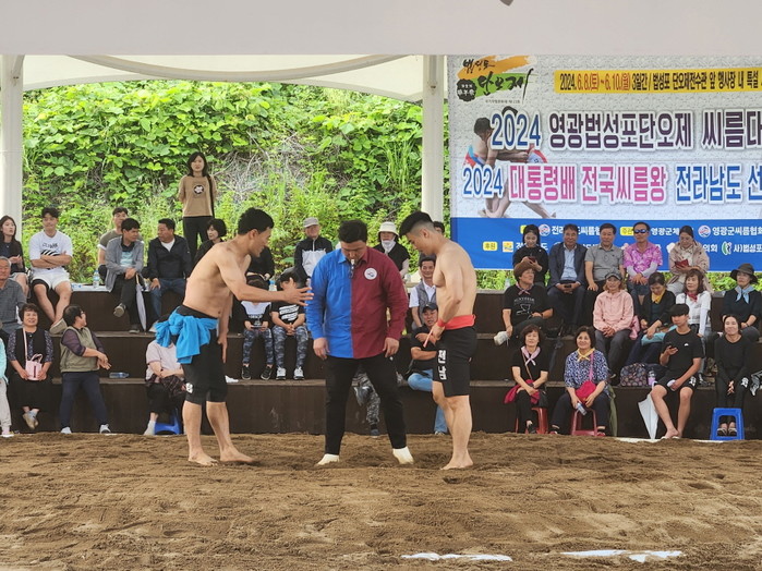 [전남=프레스뉴스] 강래성 기자= 영광군(군수 장세일)은 법성포단오제 행사 기간인 5월 30일부터 6월 1일까지 3일간, 법성포단오제 전수교육관 씨름 경기장에서 ‘2025 영광법성포단오제 씨름왕대회’와 ‘대통령배 2025 전국씨름왕 전라남도선발대회’가 개최된다고 밝혔다.