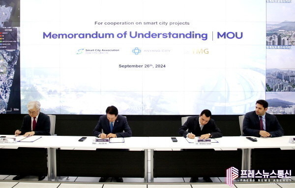이날 최대호 안양시장과 모하메드 히샴(Mohamed Hisham) TMG 대표, 모하메드 살라(Mohamed Salah) TMG 부사장, 황귀현 스마트도시협회 전무가 협약서에 서명했다.