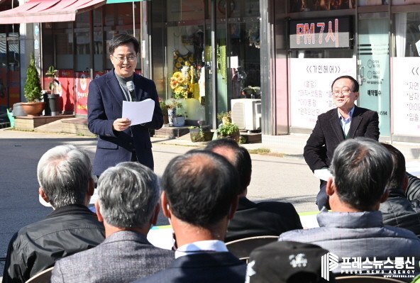김동연 지사는 25일 연천군 전곡읍 첫머리거리에서 두 번째 ‘민생현장 맞손토크’를 열고 “제가 경기북도를 특별자치도로 발전시키려고 하는 계획을 갖고 있는데, (이는) 정치적인 구호도 아니고 목적으로 하는 것도 아니다”라며 “오로지 경기북부를 발전시키려는 마음밖에 없다”고 강조했다.
