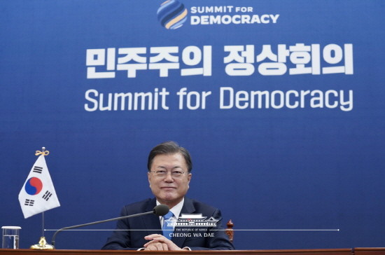 9~10일 이틀에 걸쳐 개최되는 이번 정상회의에서 문 대통령은 바이든 대통령 주재로 12개국이 참여한 본회의(Leaders’ Plenary) 첫 번째 세션에 발언자로 참석해 우리나라가 아시아 지역에서 민주화와 경제발전을 함께 이뤄낸 성공적인 경험을 토대로 민주주의 증진 노력에 적극 동참하고 기여해 나갈 것이라고 말했다.