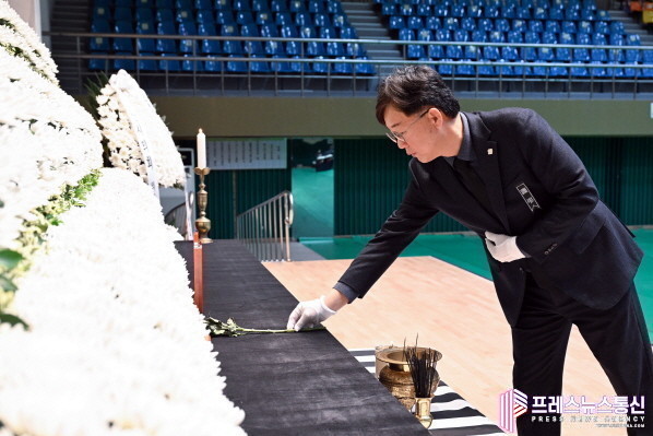 [프레스뉴스] 장현준 기자= 안산시(시장 이민근)는 이민근 안산시장이 31일 오전 안산올림픽기념관에 마련된 합동분향소를 찾아 헌화 후 묵념으로 희생자들을 애도했다고 밝혔다.