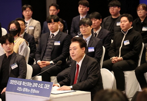 ▲윤 대통령이 지난 2월 16일 열두 번째 국민과 함께하는 민생토론회에서 대통령과학장학생 선발도 대학원생으로 확대하겠다고 밝혔다. (사진= 뉴스1) |