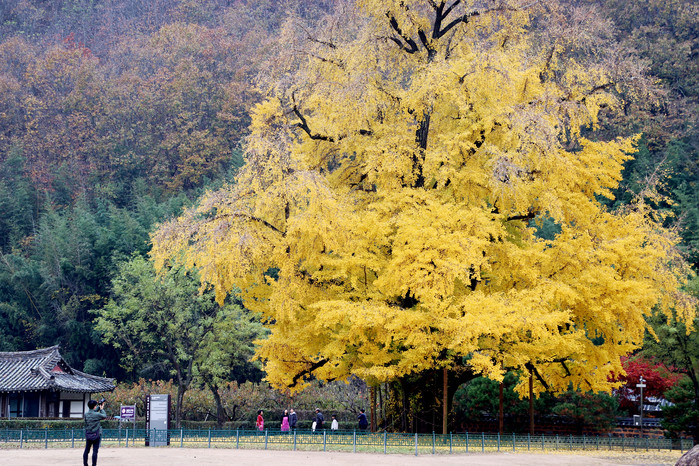 의령 세간리 은행나무는 열매를 맺는 암나무로 모양이 아름답고 우람해 가을 단풍이 아름답기로 유명하다.