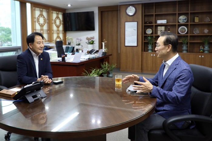 [프레스뉴스] 김교연 기자= 세종시의회 상병헌 의장이 지난 10일 손장목 신임 세종경찰청장을 접견 했다.
