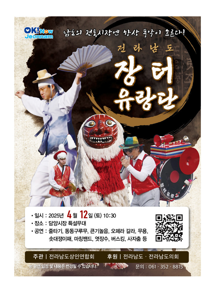 [전남=프레스뉴스] 박정철 기자=전라남도 장터유랑단 공연이 오는 4월 12일(토) 오전 10시 30분 담양상설시장 특설무대에서 열린다.