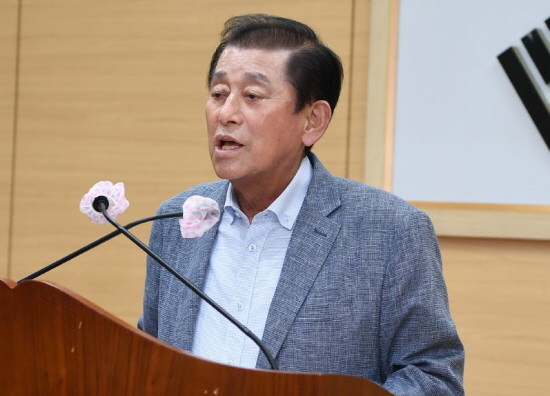 ▲지역사회보장계획 수립을 위한 공청회에 참석한 유천호 강화군수가 인사말을 하고 있다. (사진=강화군) |